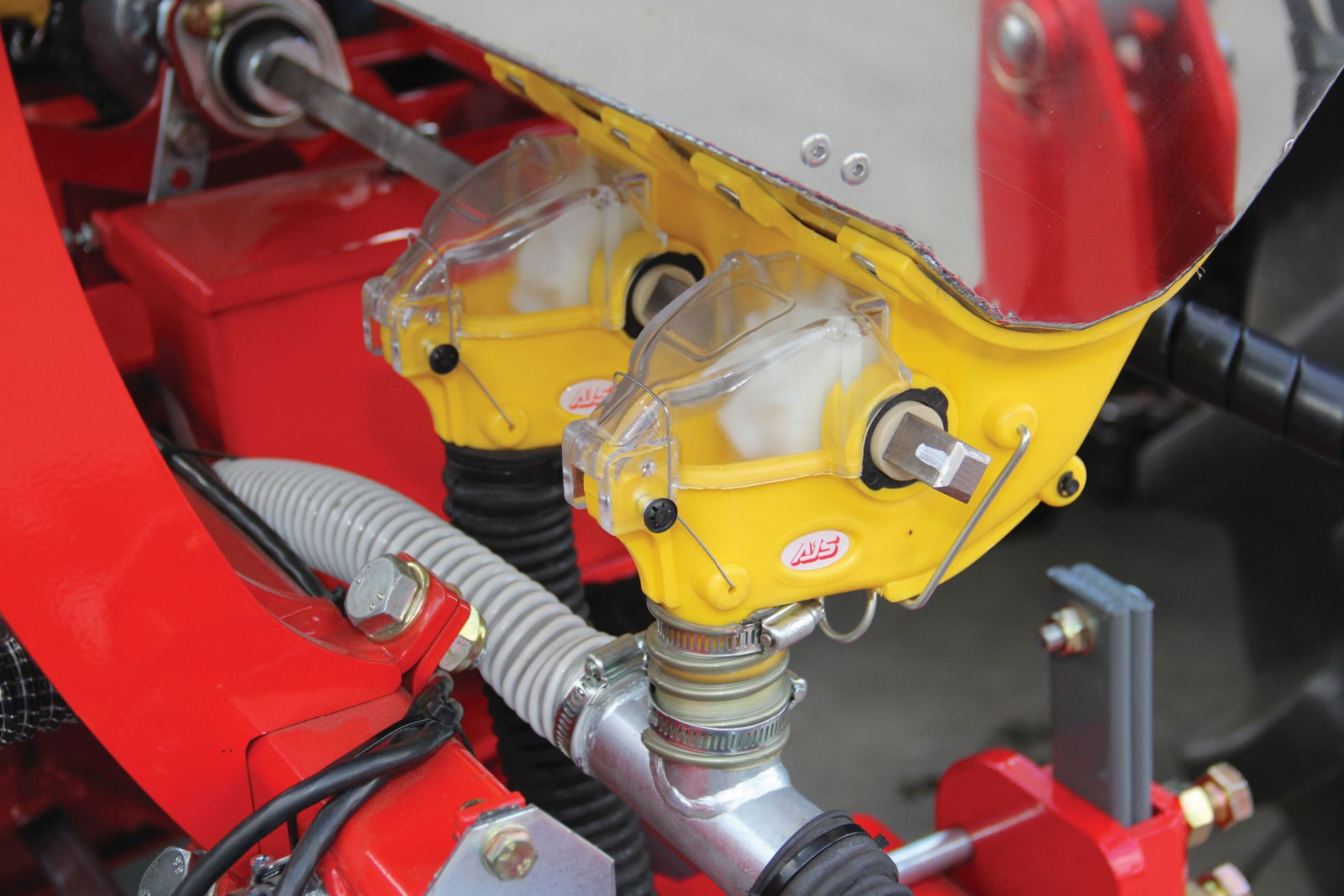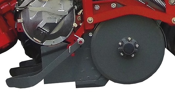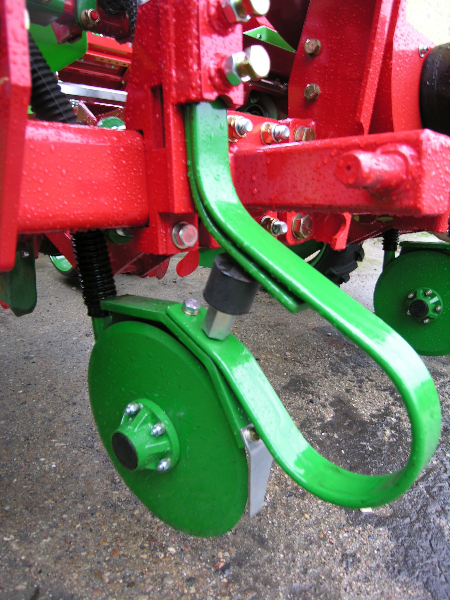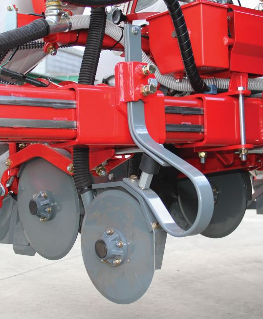 | Сошник полозный | Сошник дисковый | Высевающий аппарат. В зависимости от калибра семян сеялку DELTA можно оснастить в диски с разным количеством и диаметром отверстий. Семена пневматически всасываются к отверстиям, а скребки сталкивают излишек семян. | Однофунциональный компьютер PM100E. Контролирует процесс посева и показывает ошибки на отдельных секциях. |