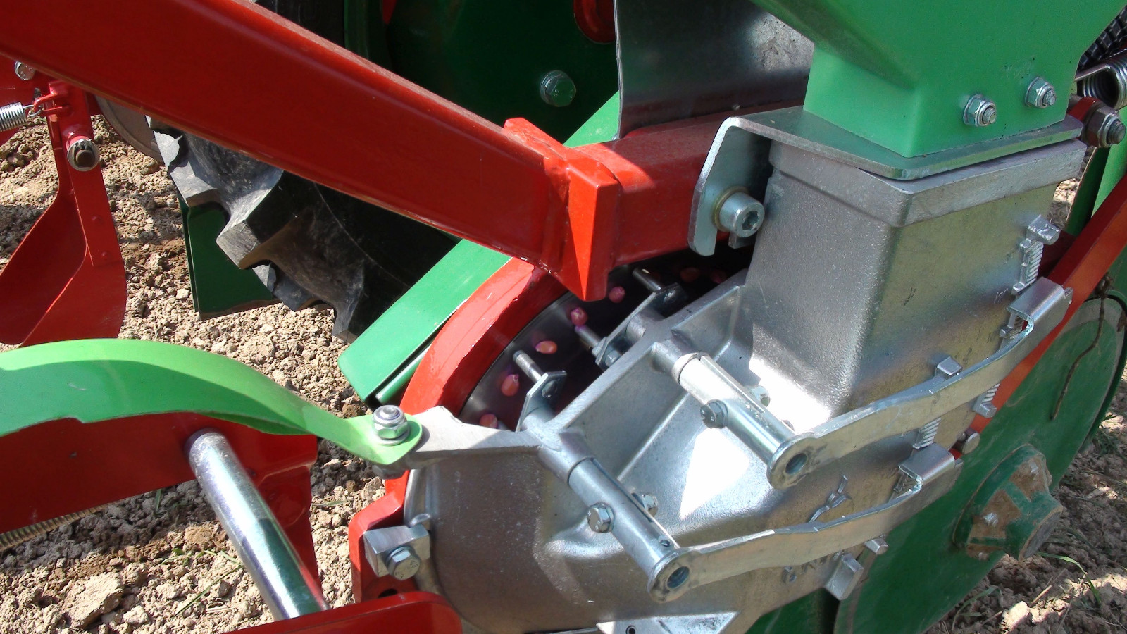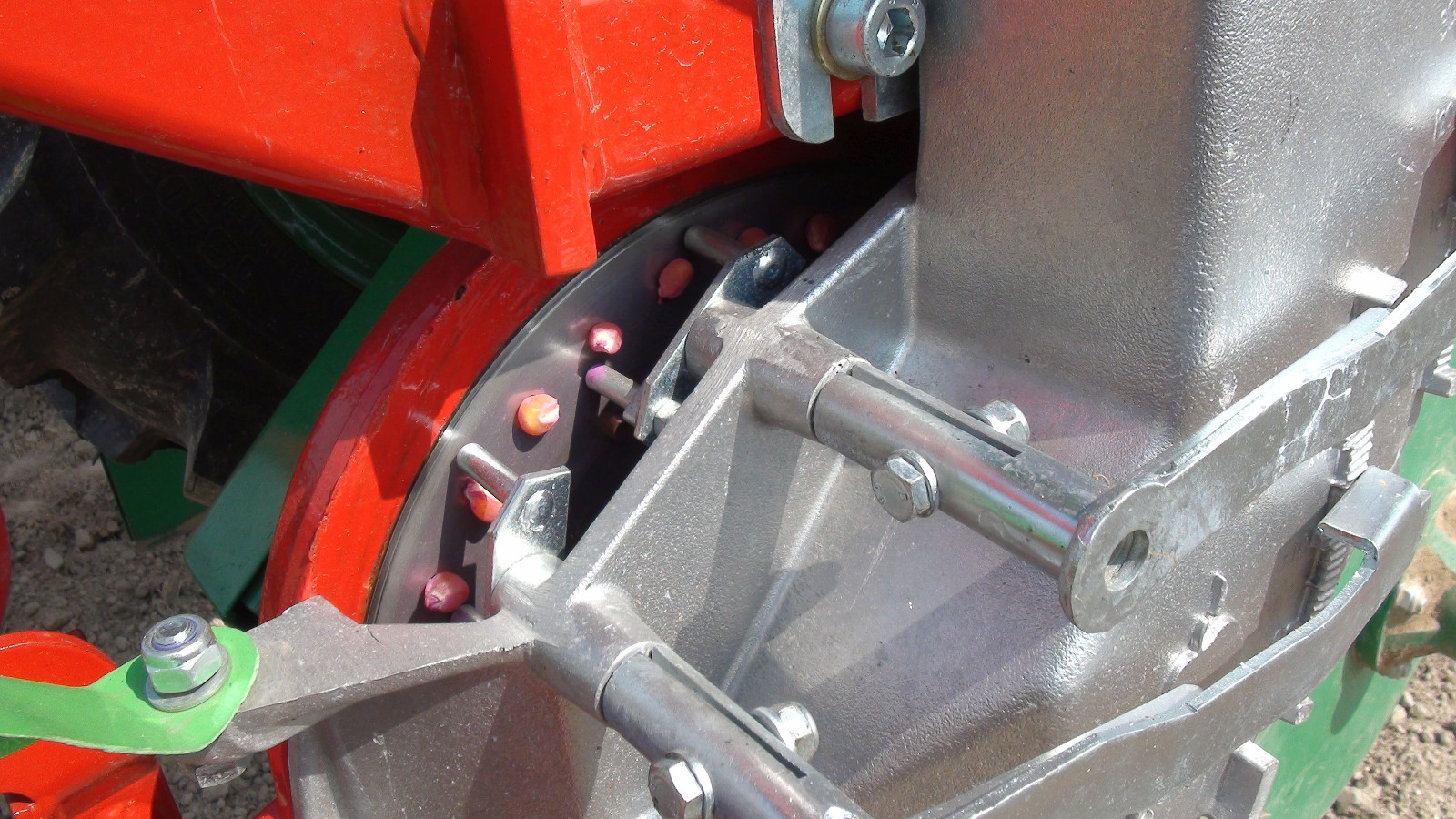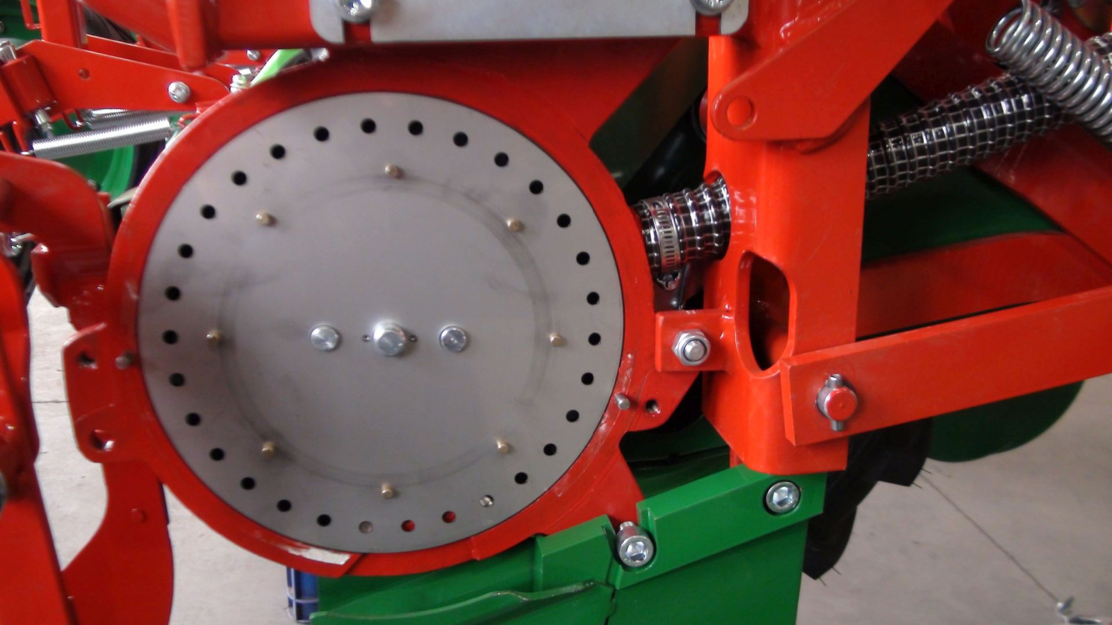 | Сошник полозный | Сошник дисковый | Высевающий аппарат. В зависимости от калибра семян сеялку DELTA можно оснастить в диски с разным количеством и диаметром отверстий. Семена пневматически всасываются к отверстиям, а скребки сталкивают излишек семян. | Однофунциональный компьютер PM100E. Контролирует процесс посева и показывает ошибки на отдельных секциях. |