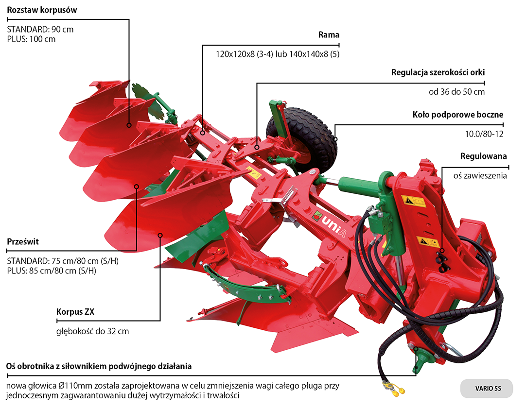 Корпус LONG. Идеально зарекомендовал себя во время разного типа вспашек и в разных полевых условиях. Конструкция корпуса позволяет на переворачивание широкого пласта борозды под широкие колеса используемых в настоящее время тракторов. Одновременно уменьшается сопротивление на корпус, а также потребность мощности трактора.